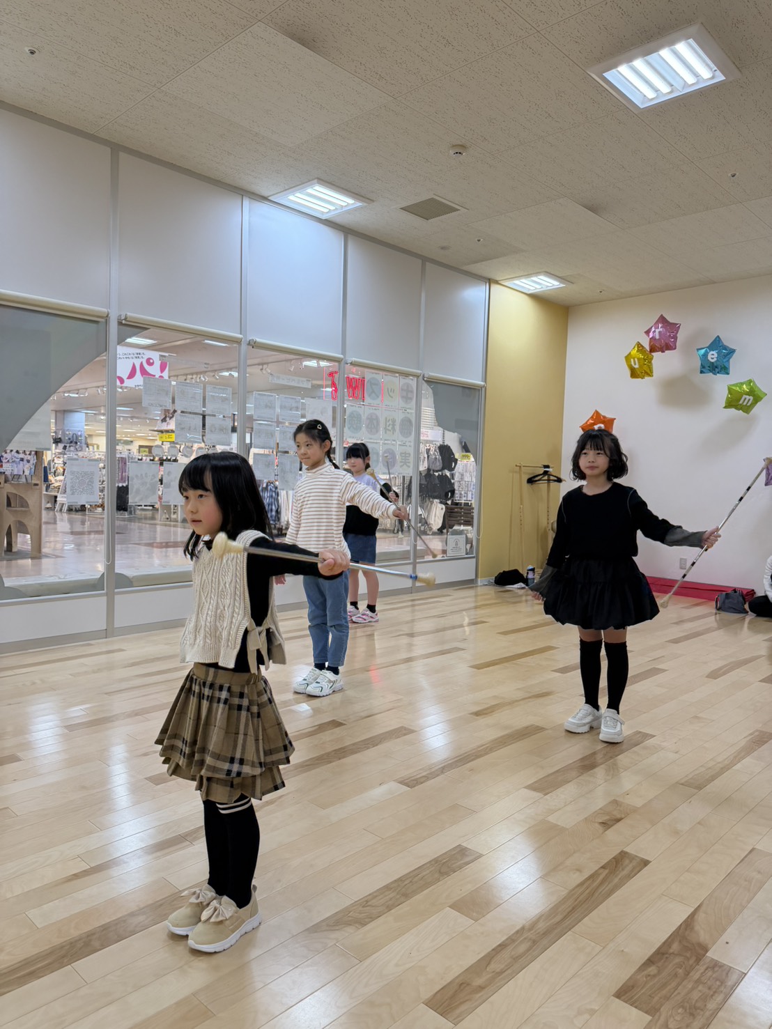 音楽に合わせてバトンを使いながら、楽しく体を動かすクラスです!